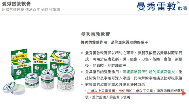 但是也不是說都不能用。薄荷的安全劑量是:每天每公斤體重可接觸 200微克(microgram)。 以一個十公斤的孩子來說,一天的上限就是2毫克。曼秀雷敦內含薄荷1.35%。所以一天可以使用的上限為150毫克左右。其實真的是不多。